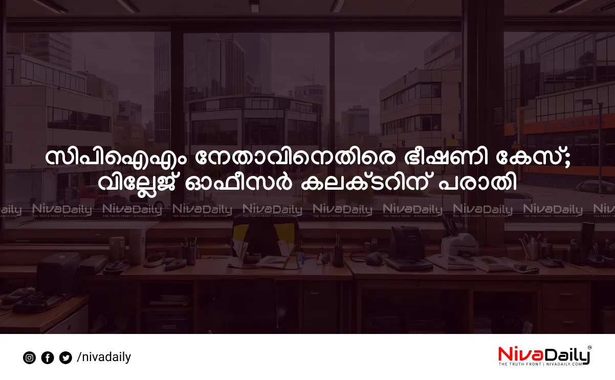 പത്തനംതിട്ടയിൽ സിപിഐഎം ഏരിയ സെക്രട്ടറി എം.വി. സഞ്ജു വില്ലേജ് ഓഫീസറെ ഭീഷണിപ്പെടുത്തിയെന്ന് പരാതി. നികുതി കുടിശ്ശികയുമായി ബന്ധപ്പെട്ട സംഭാഷണത്തിൽ ഭീഷണി നടന്നതായി പറയുന്നു. കലക്ടർ പരാതി പൊലീസിന് കൈമാറിയിട്ടുണ്ട്.